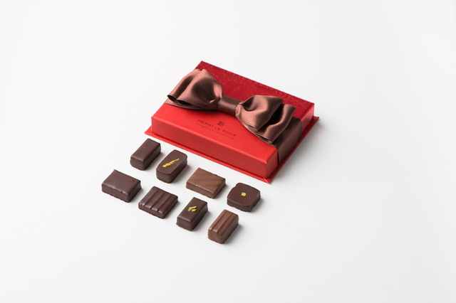 Henri Le Roux除了在2015年10月被法國頗具權威的巧克力同好會C.C.C.選為“法國不可獲缺的15名巧克力職人”外,也繼2014年之後,再次獲得「Gold Tablette(Tablette d'or)」獎。今年的「巧克力展Salon du Chocolat」預定販售混裝了2012年至2014年獲得C.C.C.奬的法式夾心巧克力之限定禮盒(12個入 4,600日圓)、及2012年、2013年得到5Tablette獎的巧克力之混裝禮盒(5個入 1,800日圓、8個入 3,000日圓)等。還有用可可亞風味的布里歐麵糰包入1份焦糖蘋果塔的「Kouign Amann Chocolat・au・Carrmel Tatin」也將登場。情人節限定商品是以深紅色的禮盒繫上大蝴蝶結這樣具Henri Le Roux 風格的設計供售。所販售的法式夾心巧克力混裝禮盒中所包含的新產品是受到與美侖美奐的義大利風景交疊而勾勒出搖擺不定的男女微妙心態的這部羅伯特羅西里尼電影作品『義大利之旅』啟發的靈感。商品陣容除了今年的新產品Modena 、Capri 、Palermo、Turin Lait這4種的組合「Coffret Biz」(1,500日圓)外,還有8個入的「Coffret Amour」(3,000日圓)、11個入的「Coffret Ensemble」(4,125日圓)共3種。