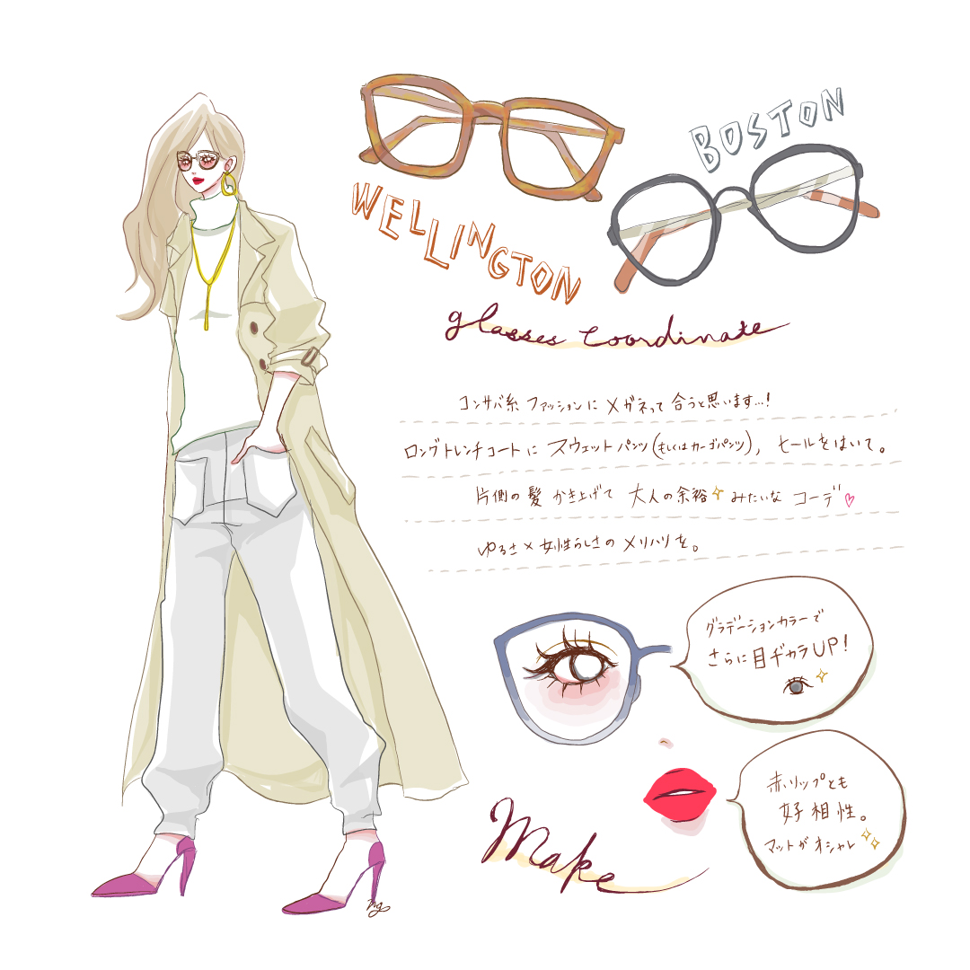 最適合用來製造反差或是畫龍點睛的配件就是裝飾用眼鏡。可是又總會煩惱「自己不適合戴眼鏡」、「不知道該搭配什麼風格」等等。一不小心就會變成書呆子的打扮,想要時尚地搭配眼鏡看似簡單,實際上卻好難喔……。因此,這次我們要來介紹搭配眼鏡的風格和挑選眼鏡的小技巧!