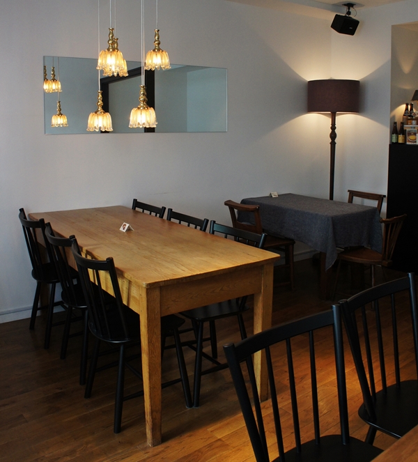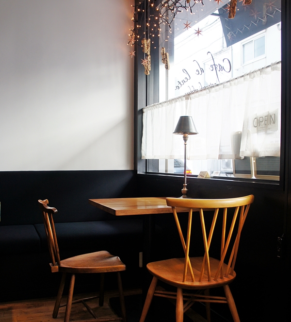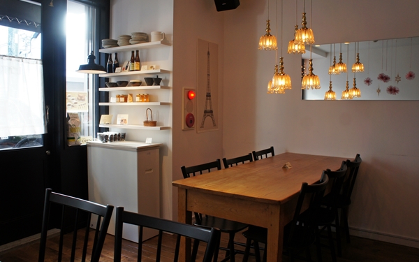 柔和的木頭地板與白色牆壁,室內裝飾的重點是一盞盞的古董燈,過去在「CICOUTE CAFE」看過的椅子也巧妙的使用在這間店。