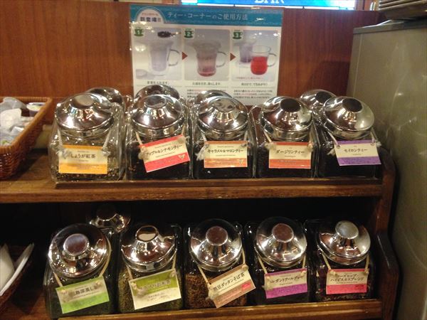 套餐的話是205円(加稅),單點是346円(加稅)。也有孩童餐價格哦。他們總共有「35種飲料」,光看種類就比Skylark加州風洋食館還要便宜呢。讓我們來看看它到底有多划算。首先,光是茶就好多種! 而且還是茶葉包呢!