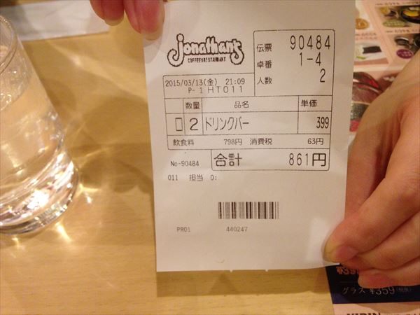 其他的連鎖店則是有可爾必思,但是再Jonathan's則是提供Ambasa(由日本可口可樂公司所發行的乳酸飲料。口味類似可爾必思)。我應該是第一次看到Ambasa吧。其他種類包括10種果汁,7種咖啡,10種熱茶, 4種歐蕾, 1種日本茶。總共有32種的飲料。●Jonathan's・筆者感想:熱茶的種類以及専用的杯子等等,感覺真的很特別! 其他則沒什麼特殊的,但是他什麼飲料都有,很平衡的感覺。