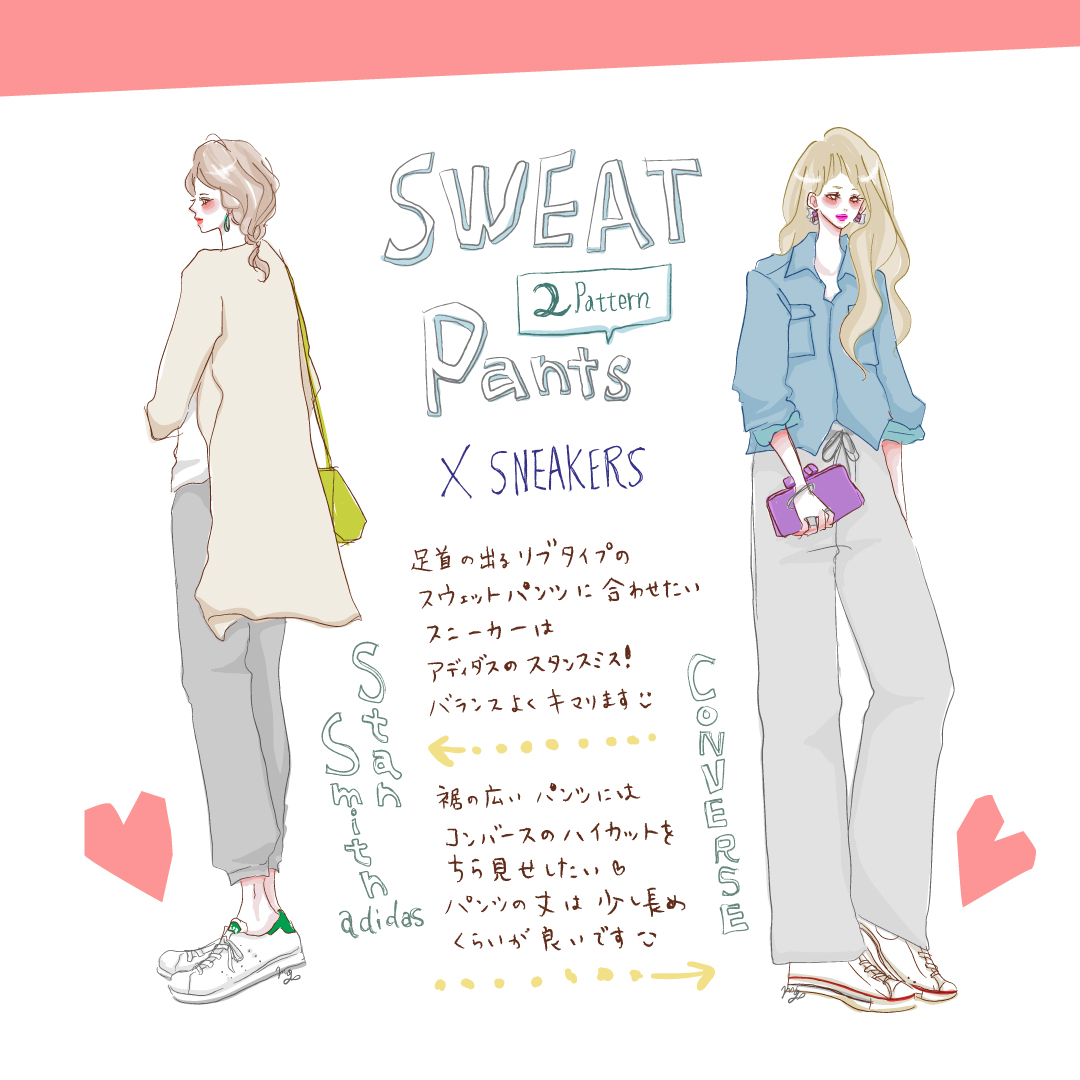 如果是要穿出門的話,腳下果然還是最適合穿高跟鞋。不過,這種情況下刻意挑選帆布鞋穿出一種輕便&有個性的感覺也很棒。雖然一聽到棉褲 × 帆布鞋的組合,有人會覺得太過輕便了,但只要在髮型和配件上花點小工夫,一樣能夠穿得很成熟♪