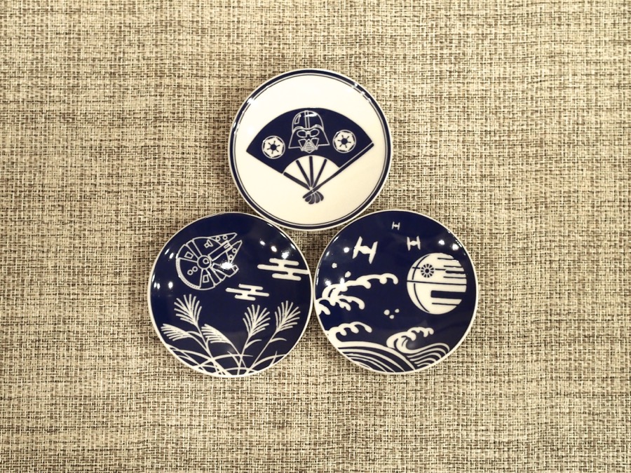 小碟子(一個756日元,稅入)。小碟子這樣的名字聽起來很可愛,不過用星際大戰的許多概念透過和風的風格來表現。照片有「安納金•天行者」「千歲鷹號」「死星」,不過還有販賣其他6種類的小碟子,全部都很可愛。全部都能收集齊全的整套組(1套8964日元,稅入)也準備齊全,所以喜歡的人請大方購買吧。