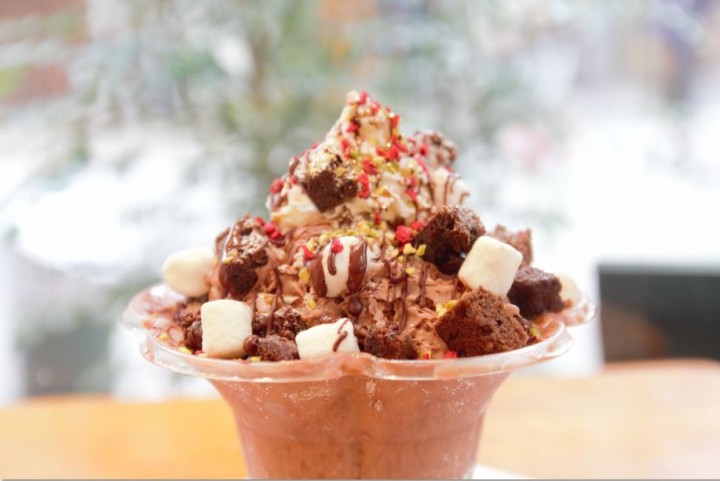 這種同時可以吃到冰淇淋和刨冰的巧克力,果然是史上最強混搭甜點!令人忍不住陶醉在甜點慢慢融化在嘴裡的時光中。因為用料豐富又多樣,所以享用的時候可以多方嘗試,找出最適合自己的吃法吧。