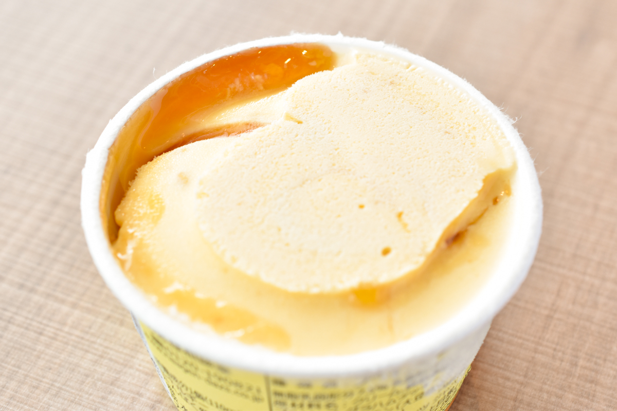 挖一口沾在杯緣上的楓糖漿部分,送入口中看看。一放入口中,楓糖的香氣就在整個口中擴散開來,臉上不由得露出滿足的表情……。然後緩緩的,愈來愈感覺到卡士達的甜味。一面散發出濃厚的甜味,而那清爽的後味又很明顯。其實它還添加了全麥麵粉製成的全麥餅乾,好像是擔任既可以提升滋味又可以讓口感變得更好的角色。
