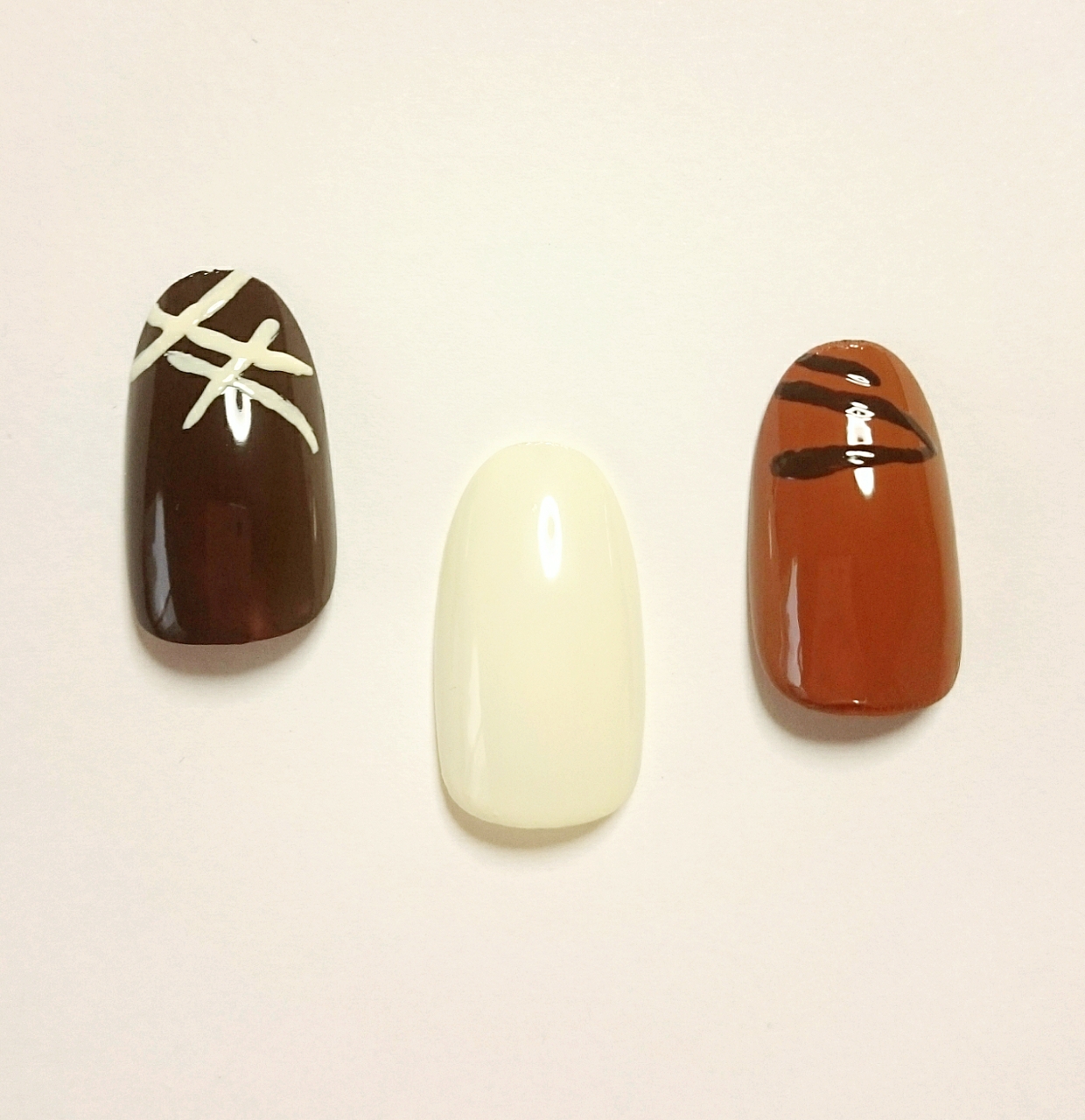 65深巧克力的話,如果不小心塗到外面會很明顯,所以建議用慣用手來塗。不過Nail Patissier的筆刷比較寬,可以隨時做調整,輕輕鬆鬆就能夠塗得很美觀。