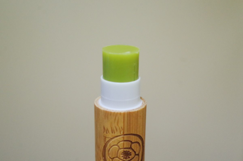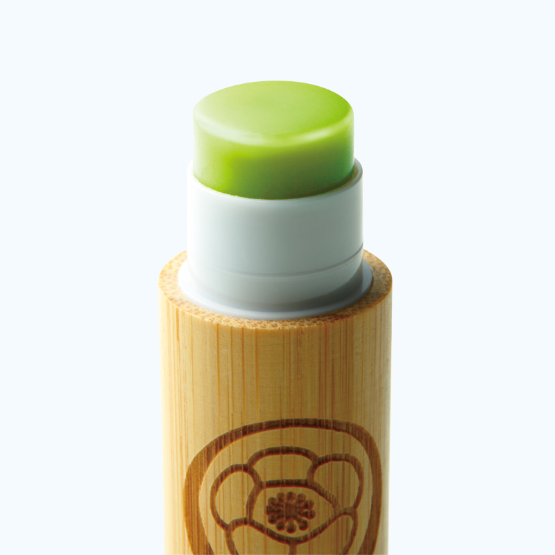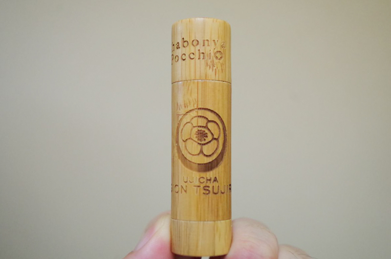 竹製的圓筒,是非常適合正宗抹茶的包裝。而護唇膏本身的顏色則是這個樣子。