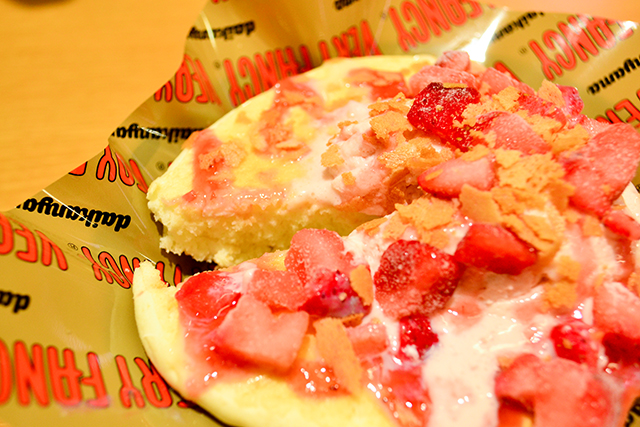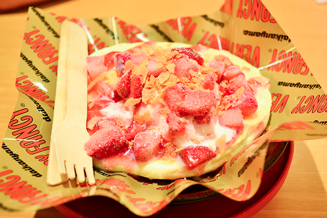 不會太甜,剛剛好!蓬鬆又柔軟的素材作為迴轉壽司的點心非常合適。對吃完壽司的人來說,是大小剛好又非常美味的點心。它吃起來比我預期的更道地,不愧是「壽司郎」。其實這個鬆餅是在代官山名店「VERY FANCY」指導下製成的。使用大量蛋白霜的食材本身,就像它的名字一樣「ふわとろ」(FUWATORO,形容軟綿綿的),非常好吃。因為是期間限定特色料理,售完即結束活動。請大家要吃就趁早喔!(西門香央里)