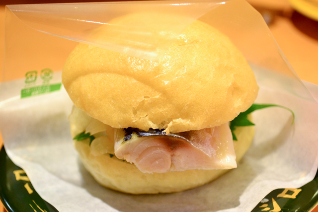 一打開小圓麵包,裡面有超大的鯖魚。趕快來試吃看看。