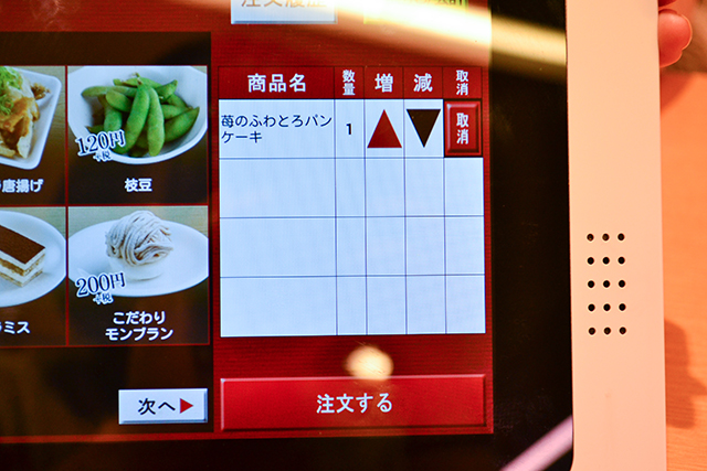 馬上按下點餐的按鈕!等了一會兒,放在專用軌道上的鬆餅來了!