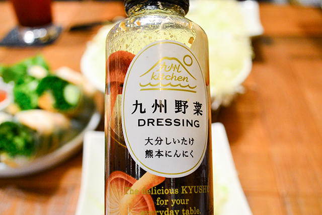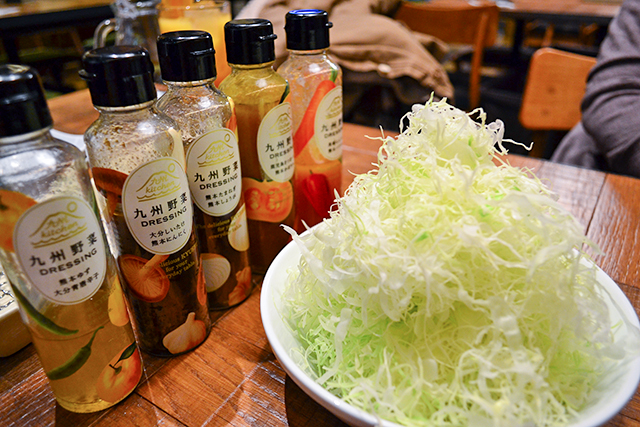 這是在勝博殿的可以吃到飽的「高麗菜絲」!果然,一定要有這道。只不過,這間店是從使用九州蔬菜調配成的五種沙拉醬中選擇兩種的樣子。我們選的是這個口味。