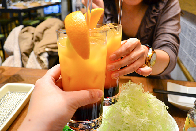 這是黑醋栗柳橙。這杯只要500日圓。乾杯~!