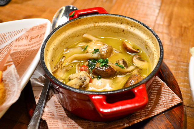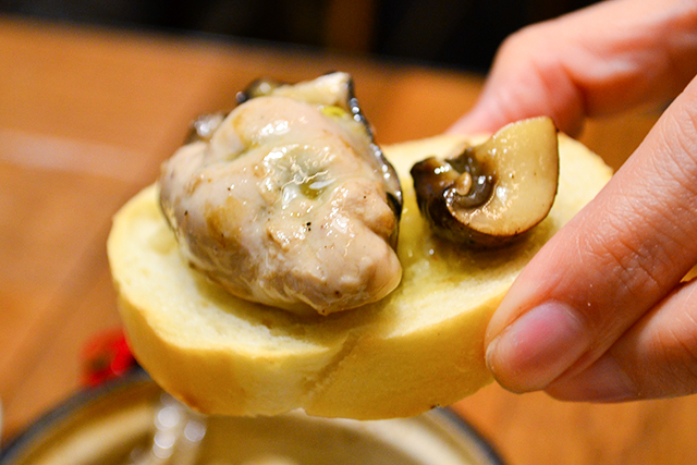 接著是來到酒吧一定要點的蒜味。這次是「蒜味牡蠣和菇類」。