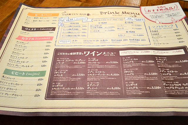 被帶到座位就定之後確定一下菜單。菜單是以傳單的形式。既然是酒吧當然有賣酒囉。因為打著賣酒店家的名號,所以酒的種類也相當多喔。