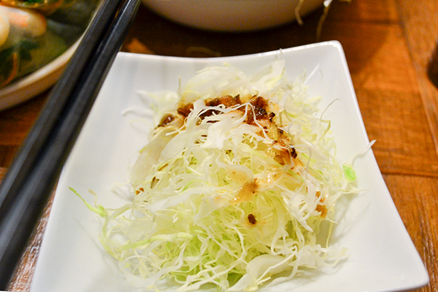 雖然想點點看高麗菜沙拉,店員說點兩人份可以免費加一次菜,但沒什麼自信可以吃到那麼多,所以還是先點一份就好。說到這,菜好像送來了…