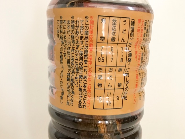 湯頭的使用比例記載在瓶子上。或許是因為味道較濃,所以湯頭本身只需要用一些就好。