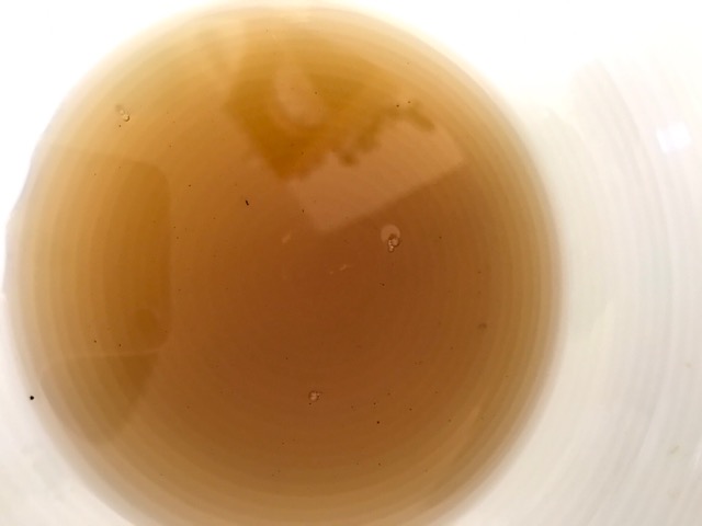 或許是因為有烤下巴,看得見黑色的顆粒。馬上用熱水稀釋,加了混合天婦羅做配菜。