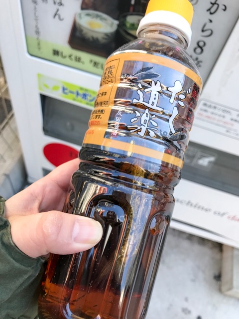 「湯頭」好像也可以用在雞蛋拌飯。就算這樣,瀨戶內產的「湯頭」在名古屋,而且還能在停車場的自動販賣機買得到,讓人覺得不可思議。使用「湯頭道樂」做了烏龍麵