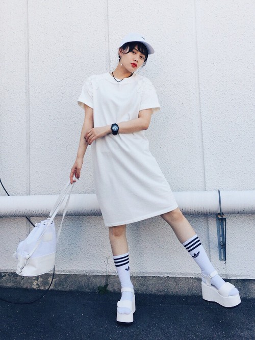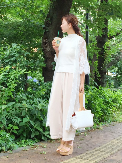 像這雙厚底涼鞋這樣,腳踝部分是細帶、腳背與腳尖露出膚色或襪子的顏色,就會呈現出高雅的腳部輪廓,所以請以它為範本試看看喔♡挑選軟木或黃麻材質的厚底,便和夏季穿搭一整個合拍