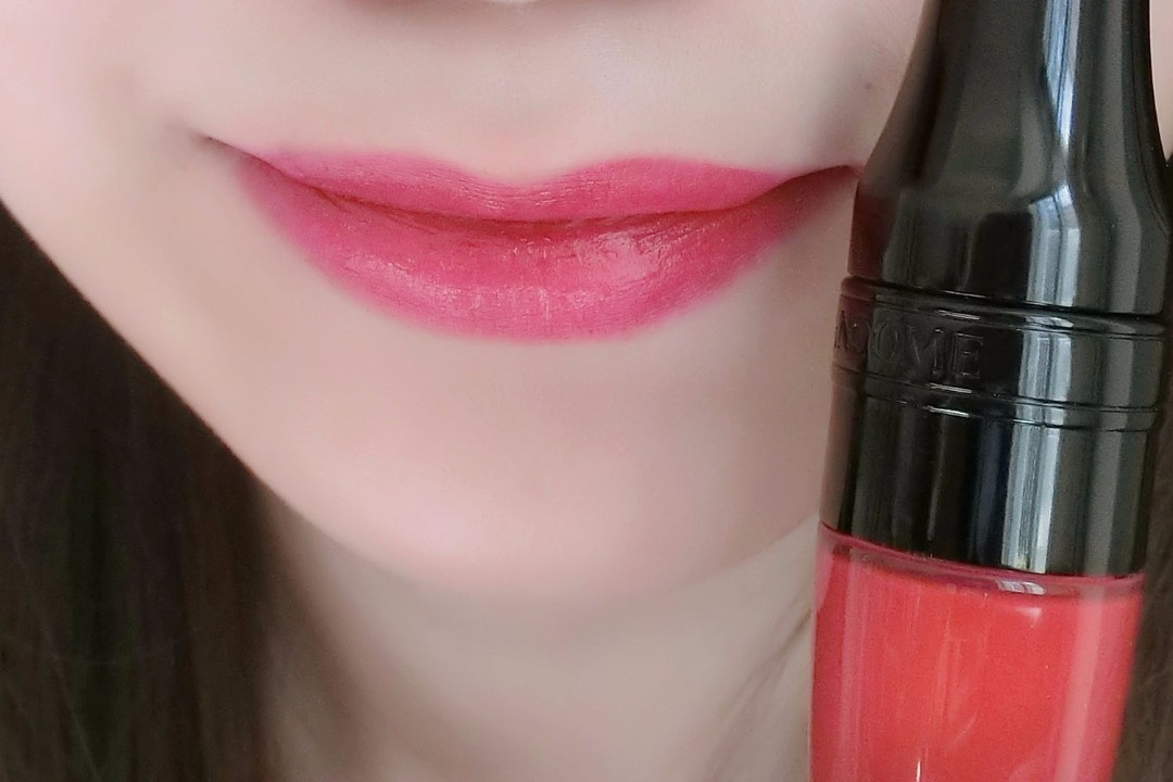 蘭蔻的果漾特調氣墊光霧唇露,有著如油一般的滑順質感。適當地調整塗擦量,可以降低顯色度。