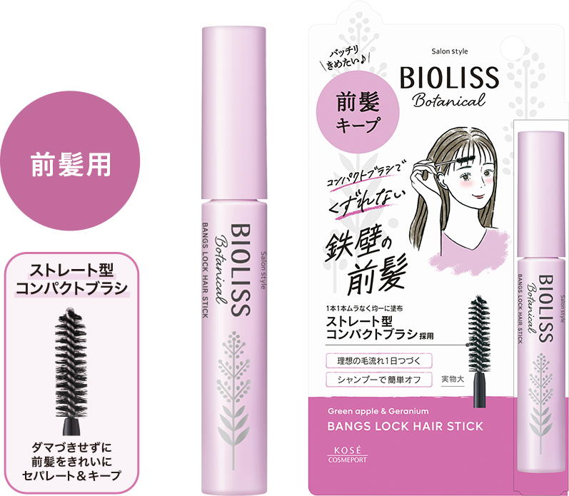 每當有想要剪劉海的想法時,都會擔心不會整理變成一頭亂髮,因此貼心的日本,做了款像睫毛膏的形式的髮型定型液,專門整理細碎的髮絲,並整齊定型,就像刷睫毛膏一樣,順著瀏海刷就能讓瀏海停住,即便是強風都不一定能將瀏海吹散,注重形象且有瀏海的女生幾乎人手一支,沒事刷兩下,讓瀏海保持最佳狀態。