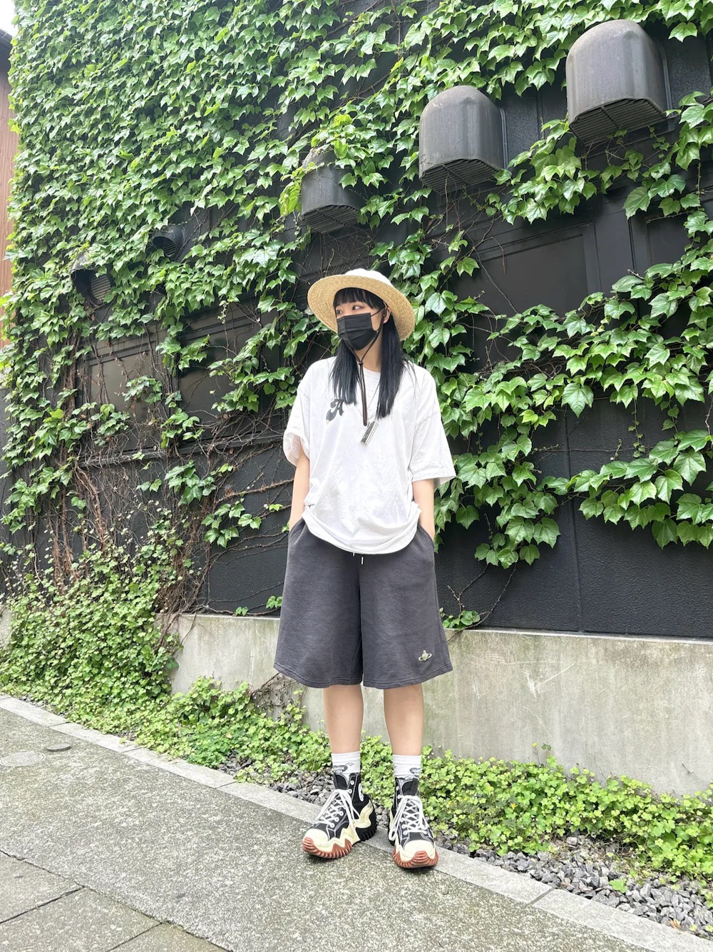草帽的休閒渡假感和五分短褲運動風毫不違和的搭配在一起,兼具舒適性及夏日清涼感,推薦給甜酷女孩作為參考!