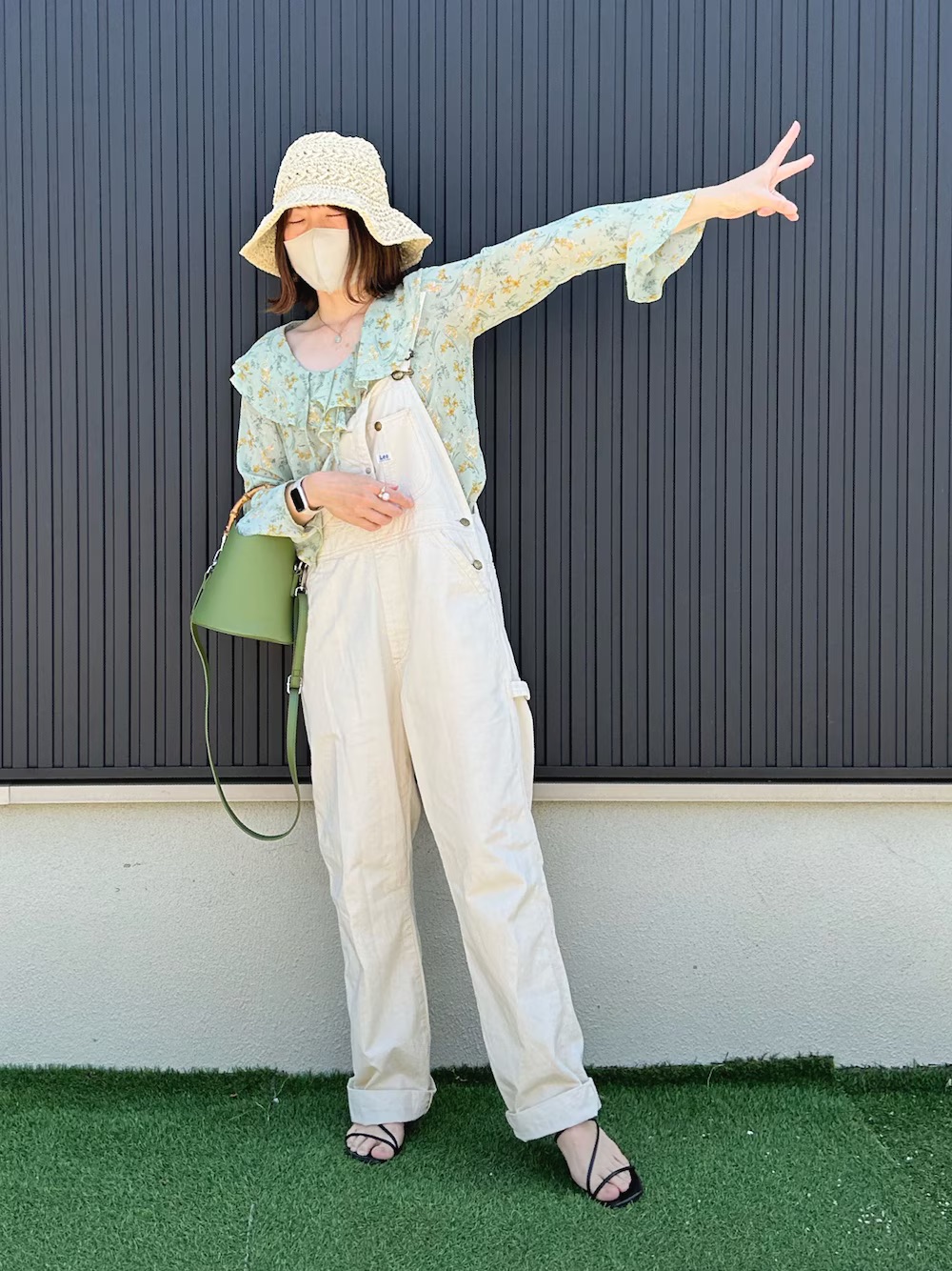 吊帶的鄰家女孩感,在稚氣與氣質間取得平衡,草帽選用較為柔軟的材質,柔和掉吊帶褲的硬挺,不管是出門丸或是去逛街都很合適。