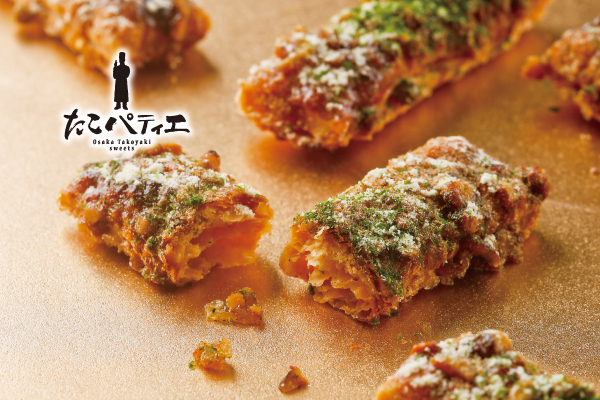 糕點師把大阪傳統風味的章魚燒與西式千層派結合出新的風味,酥脆的千層就像章魚燒咬下外皮那瞬間的香脆口感,加上海苔粉、鰹魚片及用心調和出那章魚燒獨有的鹹甜醬汁、除了章魚燒最重要的這幾個元素,再搭配上核桃、焦糖漿、是章魚燒千層派畫龍點睛之作。