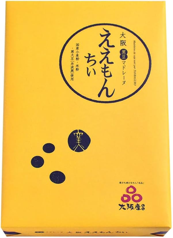 五感的黑豆馬德蓮「ええもんちぃ」是將日本國產糯米粉、麵粉及風味豐富的發酵奶油結合在一起,並且加入3顆日本國產大黑豆,最後再使用麥芽糖,打造出溼潤的口感和濃郁的香氣,是對口感層次十分注重的一款日式瑪德蓮。若要在大阪買紀念品是很受歡迎的選項。