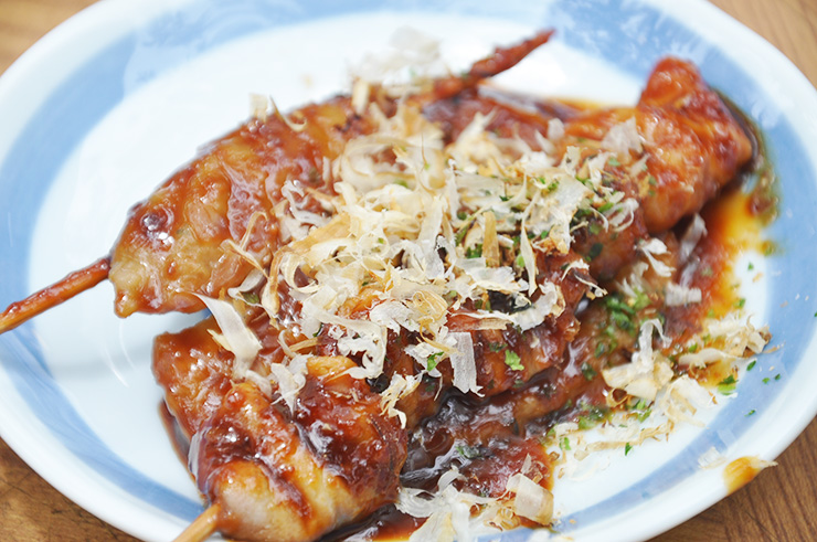 點份「靜岡關東煮」的代名詞「黑甜不辣」,加上甜甜的味噌醬與沙丁魚片一同品嚐,黑甜不辣煮的入味香甜又多汁,搭配濃郁的味噌醬,和鮮美的魚類醬汁特別合拍。