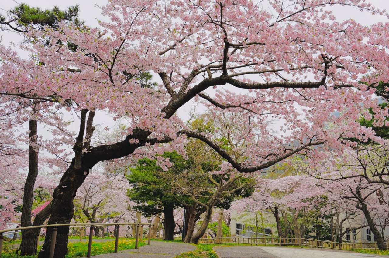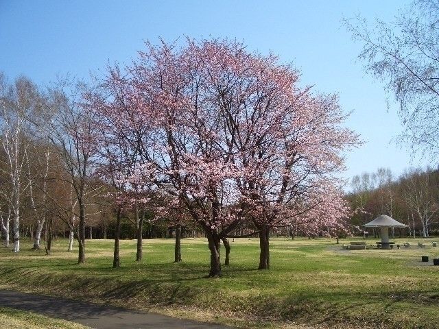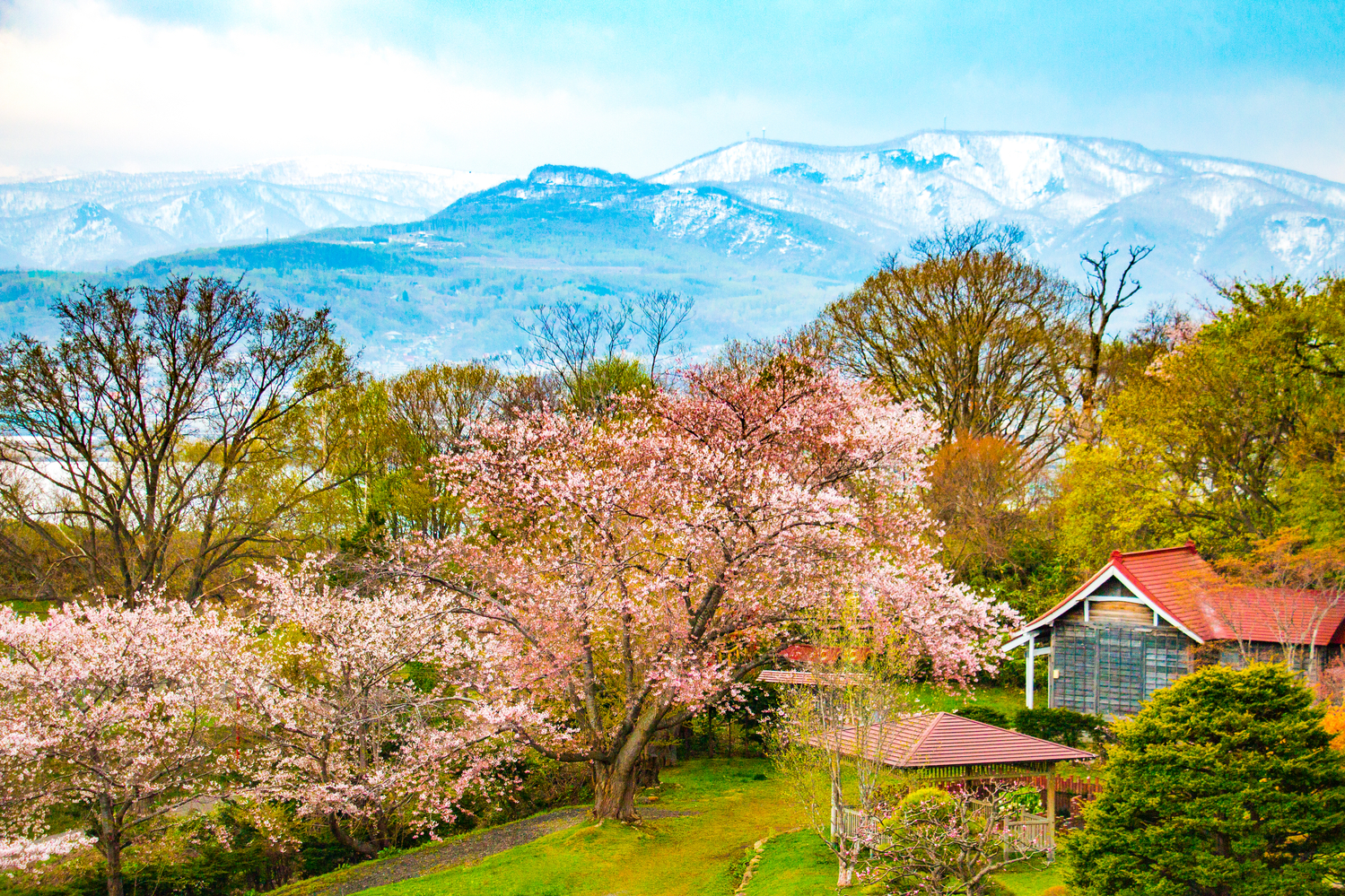 每年一到四月下旬,大山櫻就會齊聚綻放,到了五月中旬則換八重櫻開花,總計有1000棵的櫻花樹。另外這裡也是賞楓勝地喔!