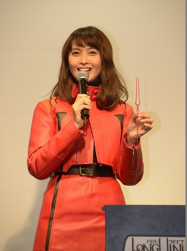 老實說,我的第一印象是月亮沒問題嗎?會不會被射出個大洞?但是根據負責人表示,現在在月球表面已經插有旗子了,加上實際上要射進月球的箭只有240mm長(實體就是下圖中,由EVA的超級粉絲的女星加藤夏希所持的物體),比想像中還要小,所以應該沒問題。