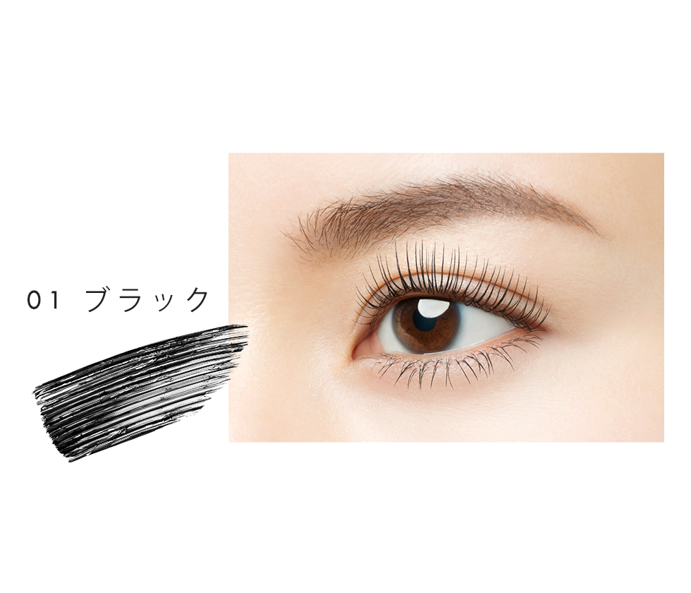 刷頭使用根根分明的梳頭,輕鬆打造乾淨的束感睫毛。主打持久捲翹及濃密熊貓眼妝的效果。內容物添加玻尿酸等美容液成份,不損害自身睫毛的健康也能維持妝容,長時間保持捲翹,並抗汗、抗淚、抗皮脂,抗暈染。非常適合現下流行的乾淨淡雅妝容。