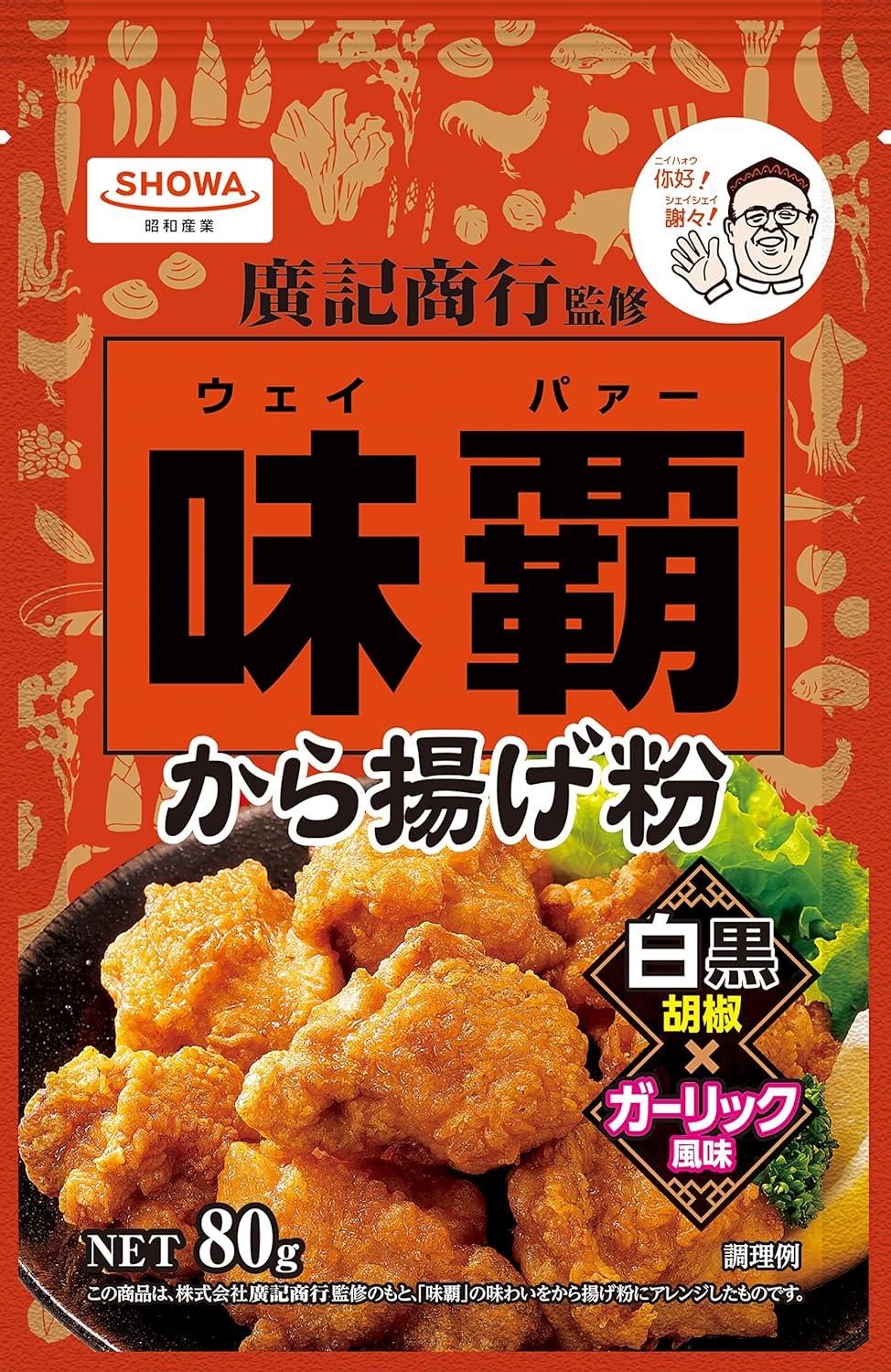 在廣記商行監修下,將具有香醇美味的萬能中華調味料「味霸」的味道,重新排列成日式和風芥末調味粉。以黑胡椒、大蒜為基礎,讓炸得酥脆的外皮不只是單調的麵粉味,而是濃郁的蒜香味,像是在居酒屋享用的唐揚雞,不需多餘調味,或許一點檸檬汁便是畫龍點睛。