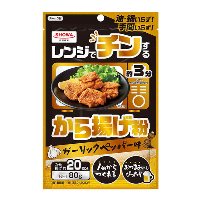 是的!你沒看錯,這款由食品大廠昭和所推出的炸雞粉,從名字就號稱是「用微波爐就好了炸雞粉」,只要撒上炸雞粉、沾到雞肉上,接著只要放進微波爐就好了!不需要用油也不需要下鍋,就可以有鮮嫩多汁又美味的炸雞可以享用。使用厲害的配方,讓日式唐揚炸雞變成一道非常簡單、不用食譜的快速料理。便當還沒有決定主菜嗎?快點加上這個醬油口味的美味日式炸雞吧!