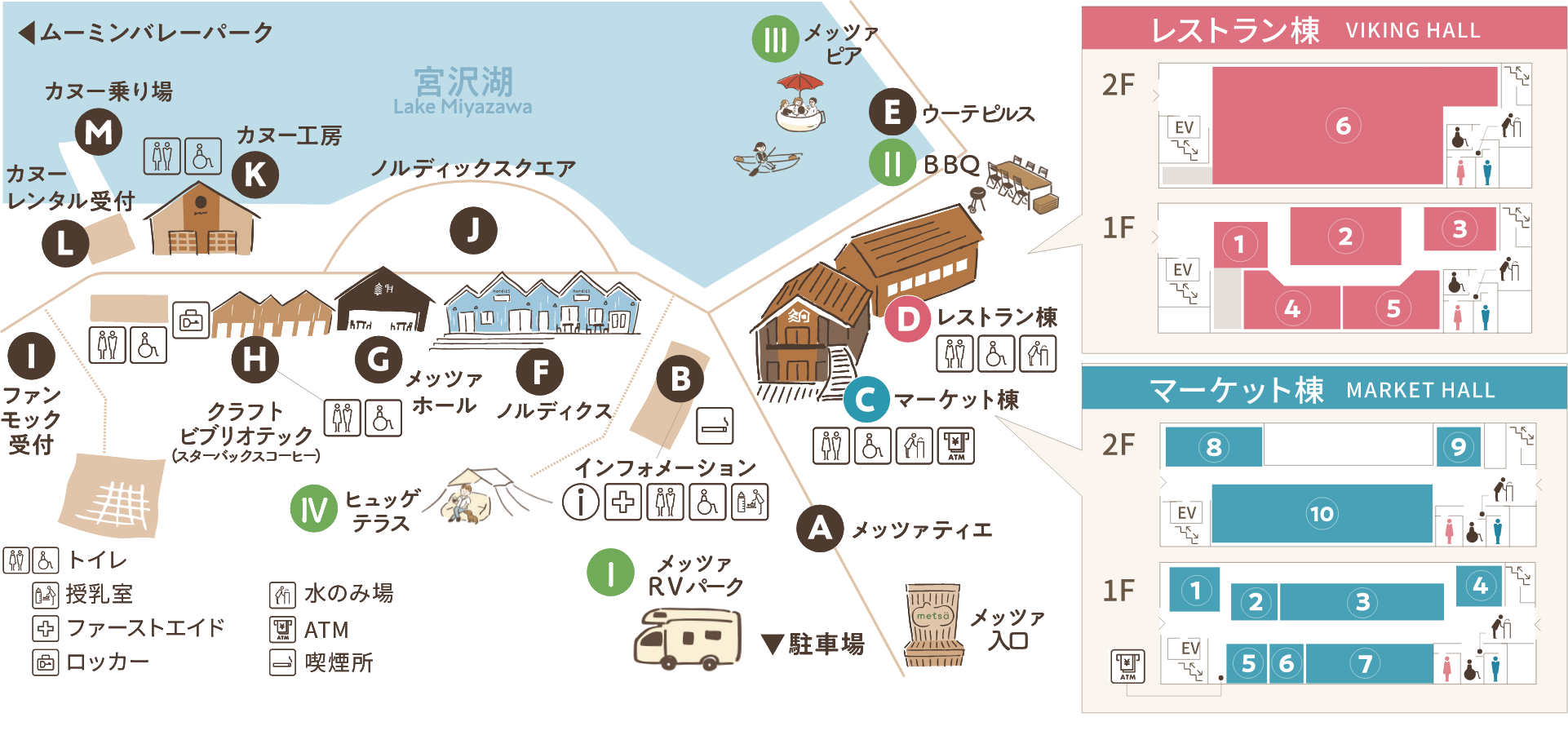 位在嚕嚕米屋左手邊的現代化建築,就是C區的展覽設施,裡面除了各種精彩必看的展覽外,還有咖啡廳、餐廳以及園區內面積最大、販售商品數最多的周邊商品店,想買到最齊全的限定商品及伴手禮,來這裡準沒錯!