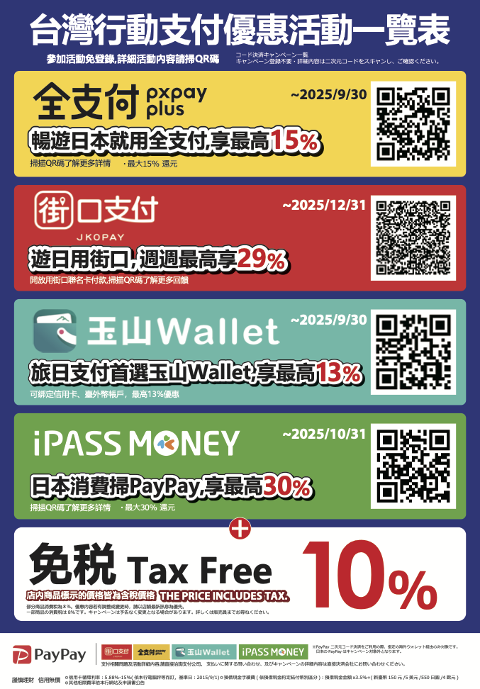 A:電器跟美妝產品累積超過¥5001日幣,持護照退稅10%後使用這張優惠券即可