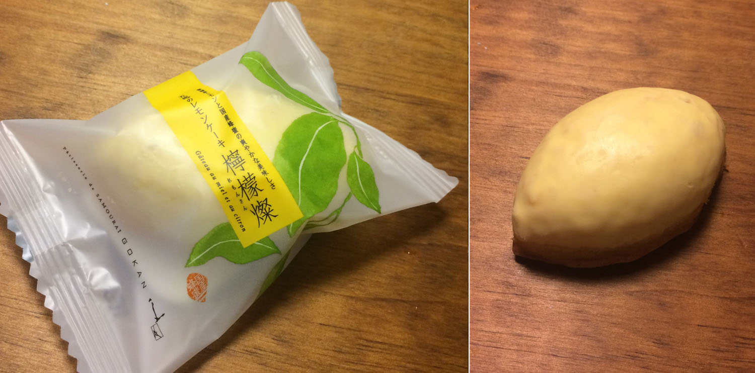 大阪點心舖「五感」的「檸檬燦」。則是加進以「岩城檸檬」所製成的糖漬檸檬皮。