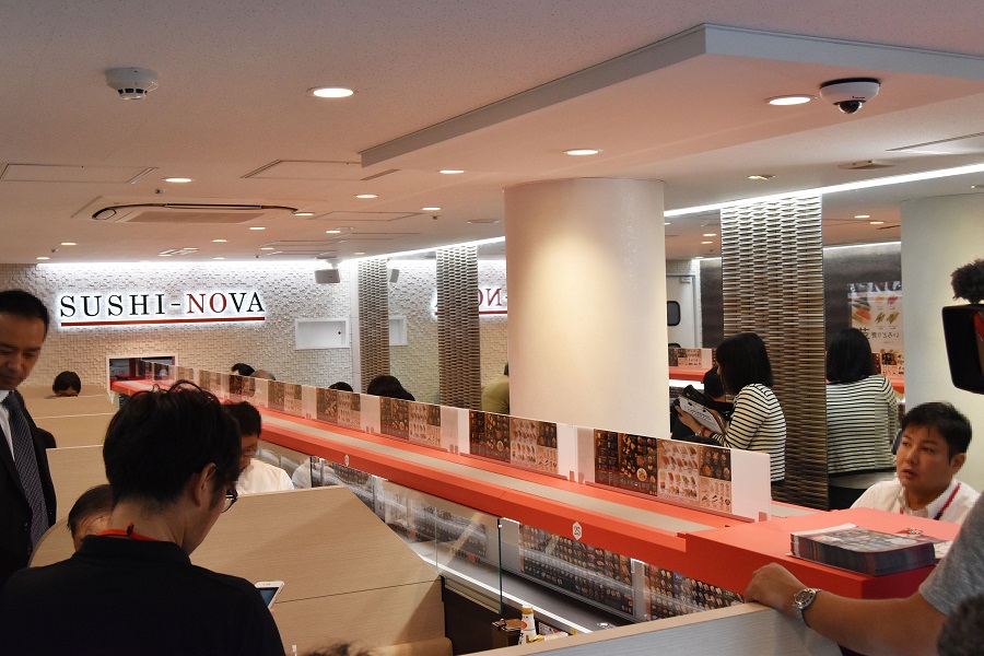 「好想吃壽司,可是好貴……」我想有滿多人都不斷重覆著這種衝動然後又消逝。在市郊的話,吃得到物美價廉壽司的連鎖店也逐漸增多了,但如果是在東京都內,現狀就是雖然美味的店家有很多,卻都要花上很多錢。為了滿足都心位置這種大眾的需求,旗下擁有河童壽司和牛角等店的COLOWIDE,將於9月18日開設價格合理的新營業型態壽司店鋪「鮨之場」。這家店鋪,以白色為基調讓女性也可以放心進入的似咖啡廳氣氛的店內是其特徵,眼前則是採用了將壽司送過來的「特急跑道」的樣子。菜單也網羅了從蔬菜壽司乃至媲美高級店的藍鰭金槍魚,所以我便去了專為新聞媒體舉辦的試食會看看。一號店的位置是在位於青山通的青山學院大學前,時尚的飲食店鱗次櫛比。