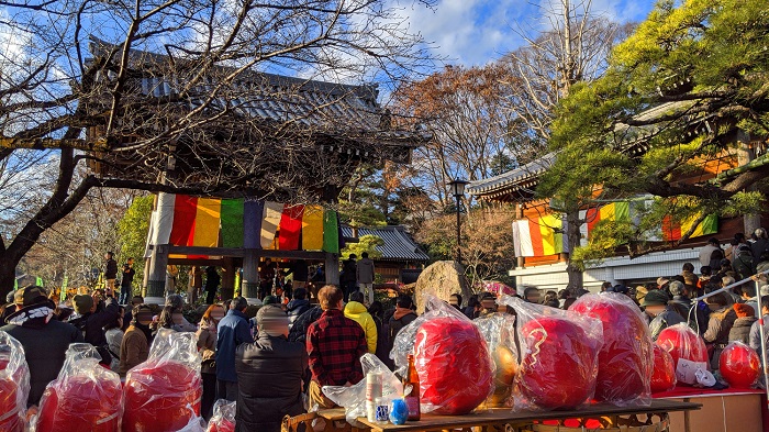 當天境內有300多個路邊攤,成片的達摩不倒翁店舖滿滿的吉祥紅豔。連綿不絕的不倒翁看起來喜氣洋洋。這個自江戶時代就相傳下來的傳統活動,每年都有超過10萬人到訪。現場除了不倒翁攤販外還有各種小吃店和飲品店開張,從參拜道至寺廟境內熱鬧無比。