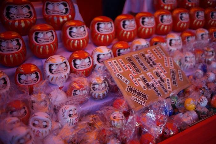 日本人在新年初始時會買雙眼空白的不倒翁來作為新年想實現的目標吉祥物來許願,用來勉勵自己實現目標。每年一月到三月時許多寺廟都會舉辦「達摩市集(だるま市)」是日本新春時的傳統盛事,就來介紹日本的三大「だるま市」。