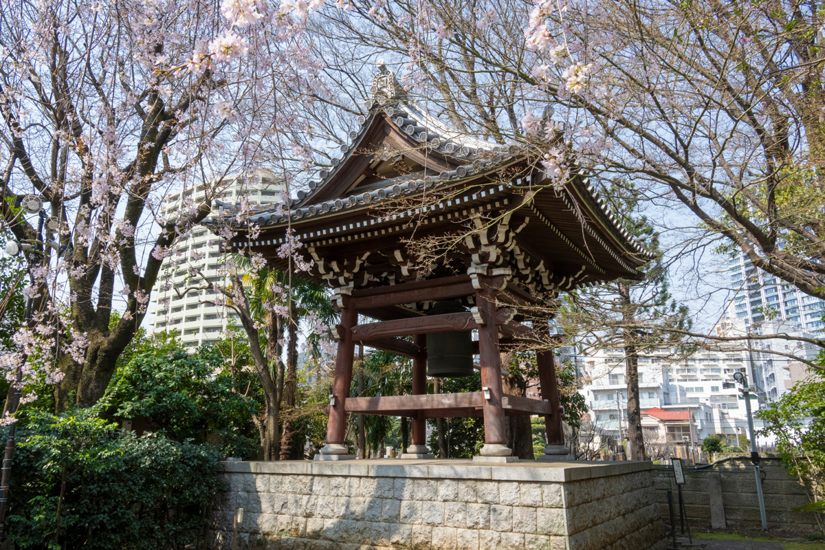 法明寺的梵鐘製造於1732年,下緣刻有許多江戶時代民眾使用的物品紋樣,如酒阩、秤、算盤等。也多虧這些紋樣,才避免本鐘在戰爭時期被徵為金屬物資,保存至今。