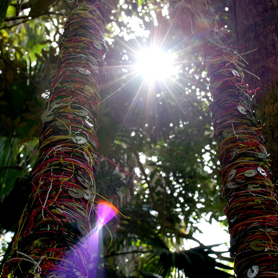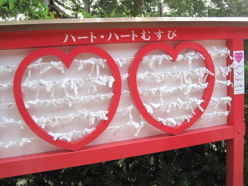 境內有棵夫妻樹,奉納後依照願望選擇繩子的顏色,串上銅錢後再綁上夫妻樹上,若想要祈求戀愛必勝的話,記得要拿桃紅色的繩子喔。境內有處投磁所,是消災改運的地方,奉納後朝投瓷所禮拜兩次,並說出心中願望,將素燒的陶片朝裡頭一處由繩子圍起來的地方投擲,若投進的話表示心願會達成,陶片碎裂的話則代表開運除厄。即使只是在神社旁的海岸散步,或許可以譜出意外的戀曲呢!