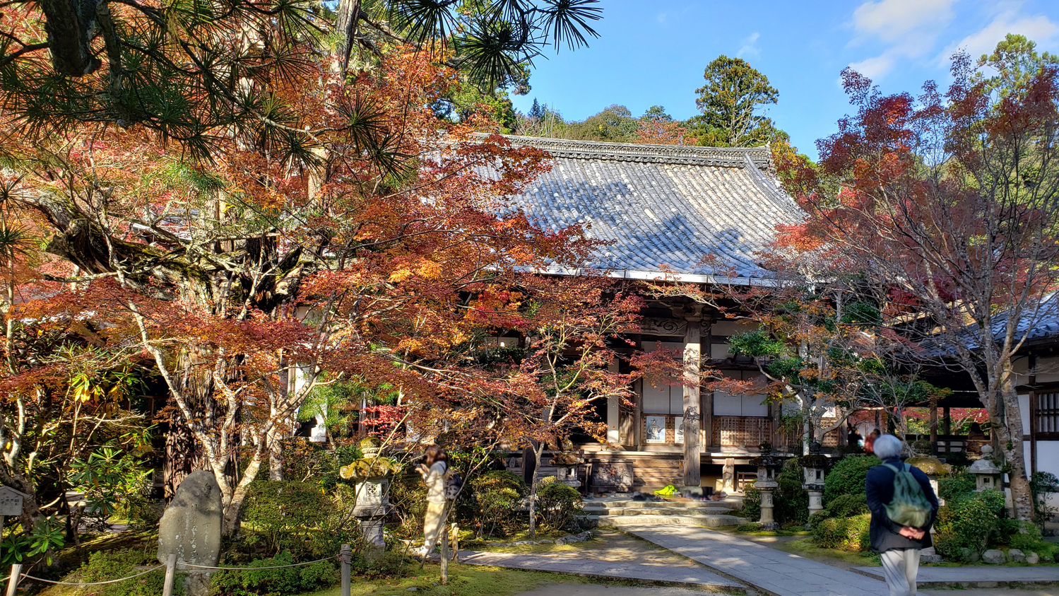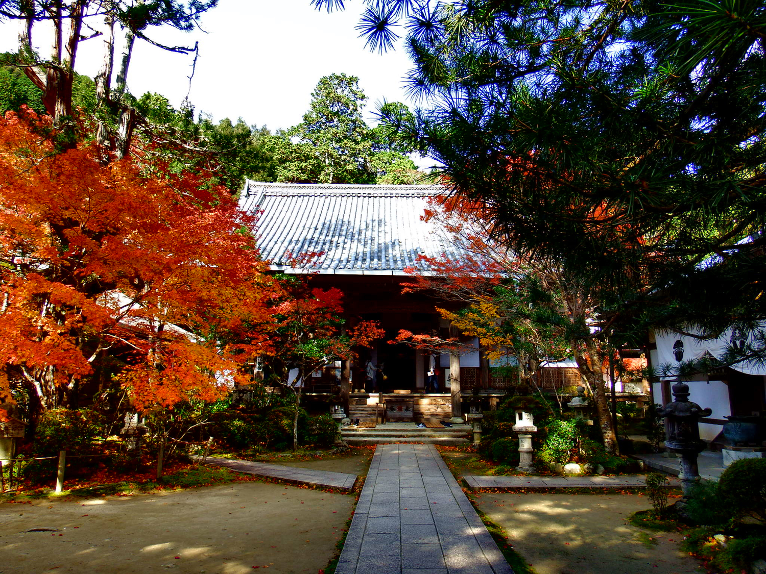 本堂也是鎌倉時期的代表建築物,被列為國寶。在通往本堂的參拜道上有守護大家的「千躰地蔵」,在金剛輪寺內部也有日式庭院、秋天時還有「血染的楓葉」可以觀賞,能夠感受到四季的變化。