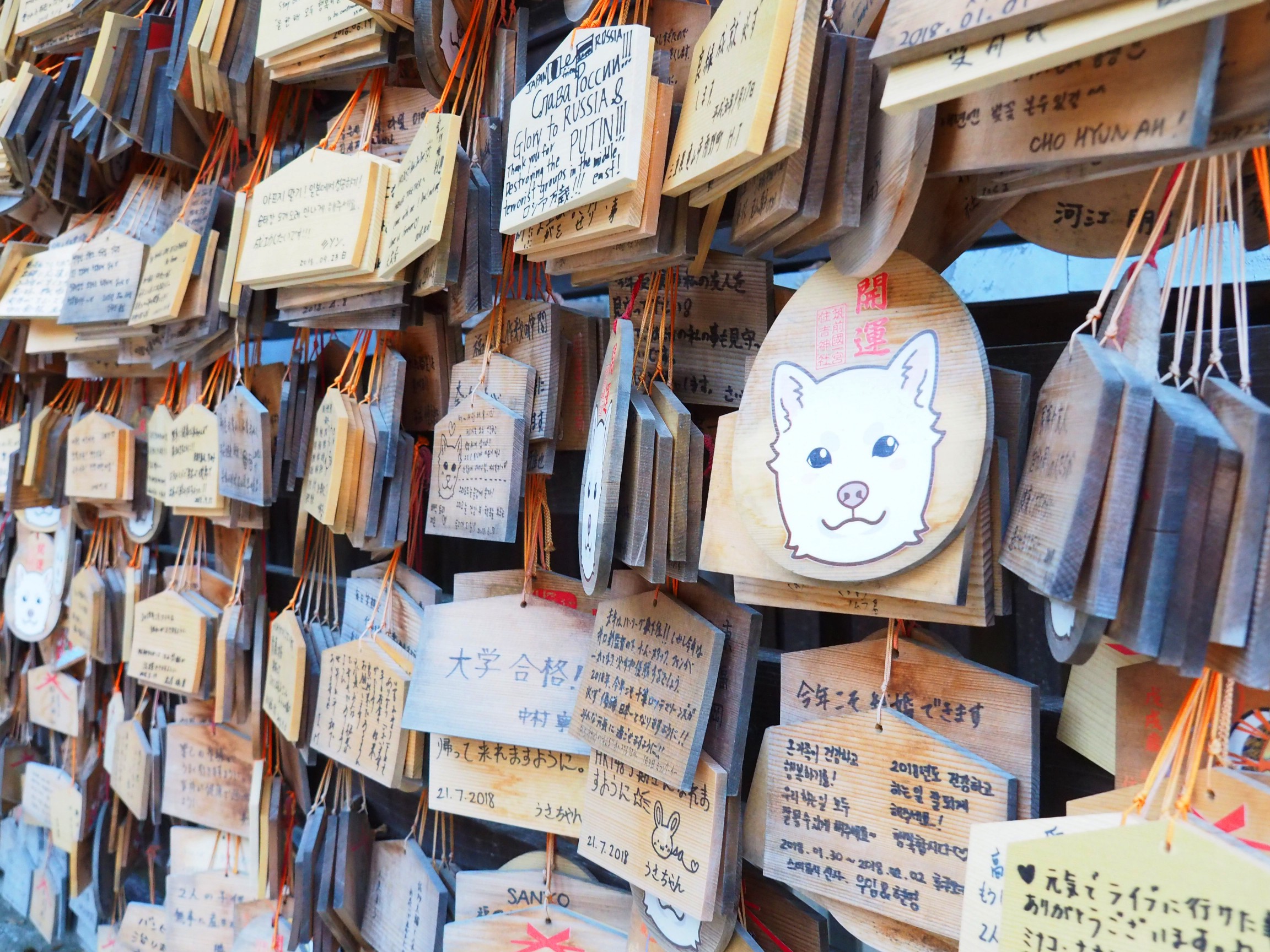 根據每年的生肖圖樣也跟著不同的住吉神社繪馬,平成三十年的是可愛的白犬圖樣。