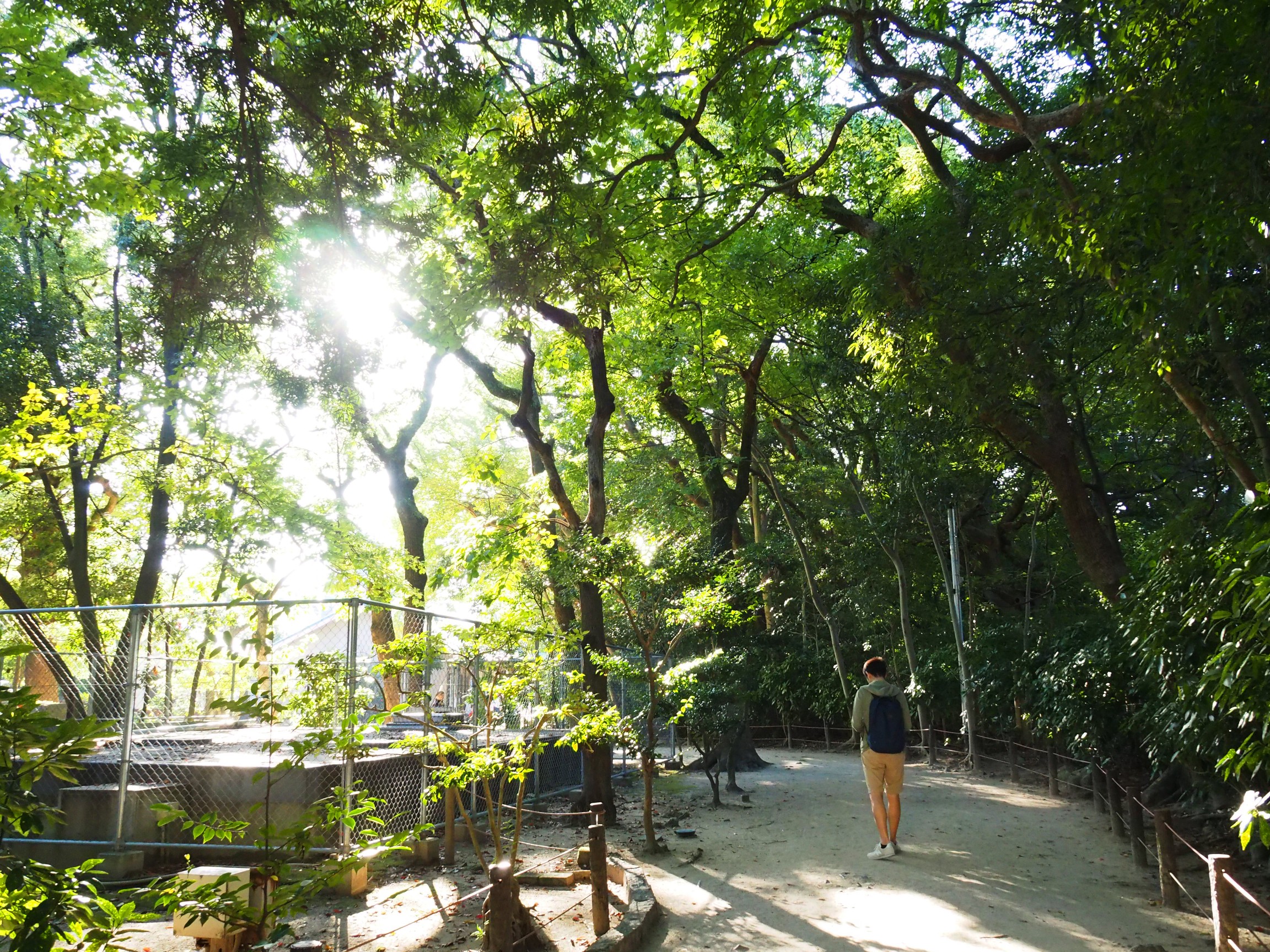 要進入住吉神社本殿前,會先經過一條幾十公尺的參道。一邊走在其中可以感受到兩旁都是擁有年歲的高大樹木,天氣好時走在其中是相當的輕鬆舒適。