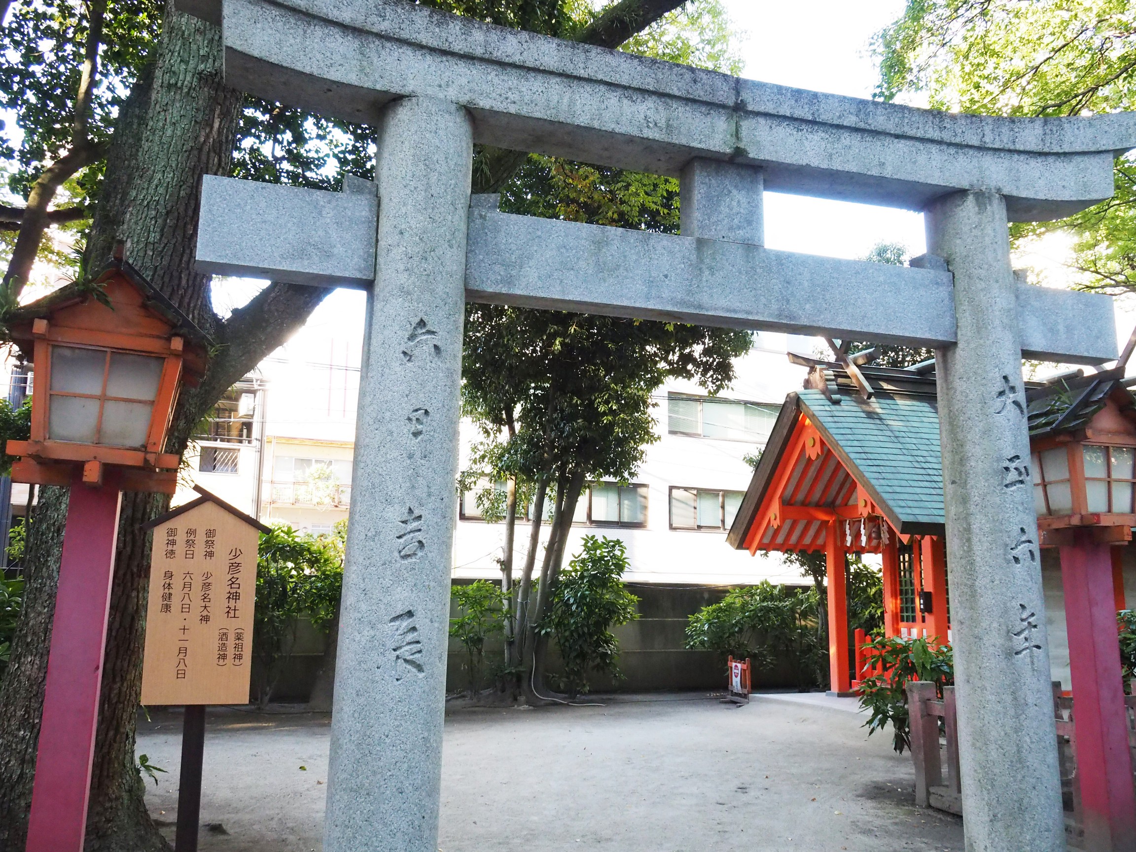 在參道上還供奉著小小的「少彥名神社」,少彥名大神(藥祖神)是日本的智慧、醫 藥、商業、開拓之神,其存在近似於中國的神農氏。