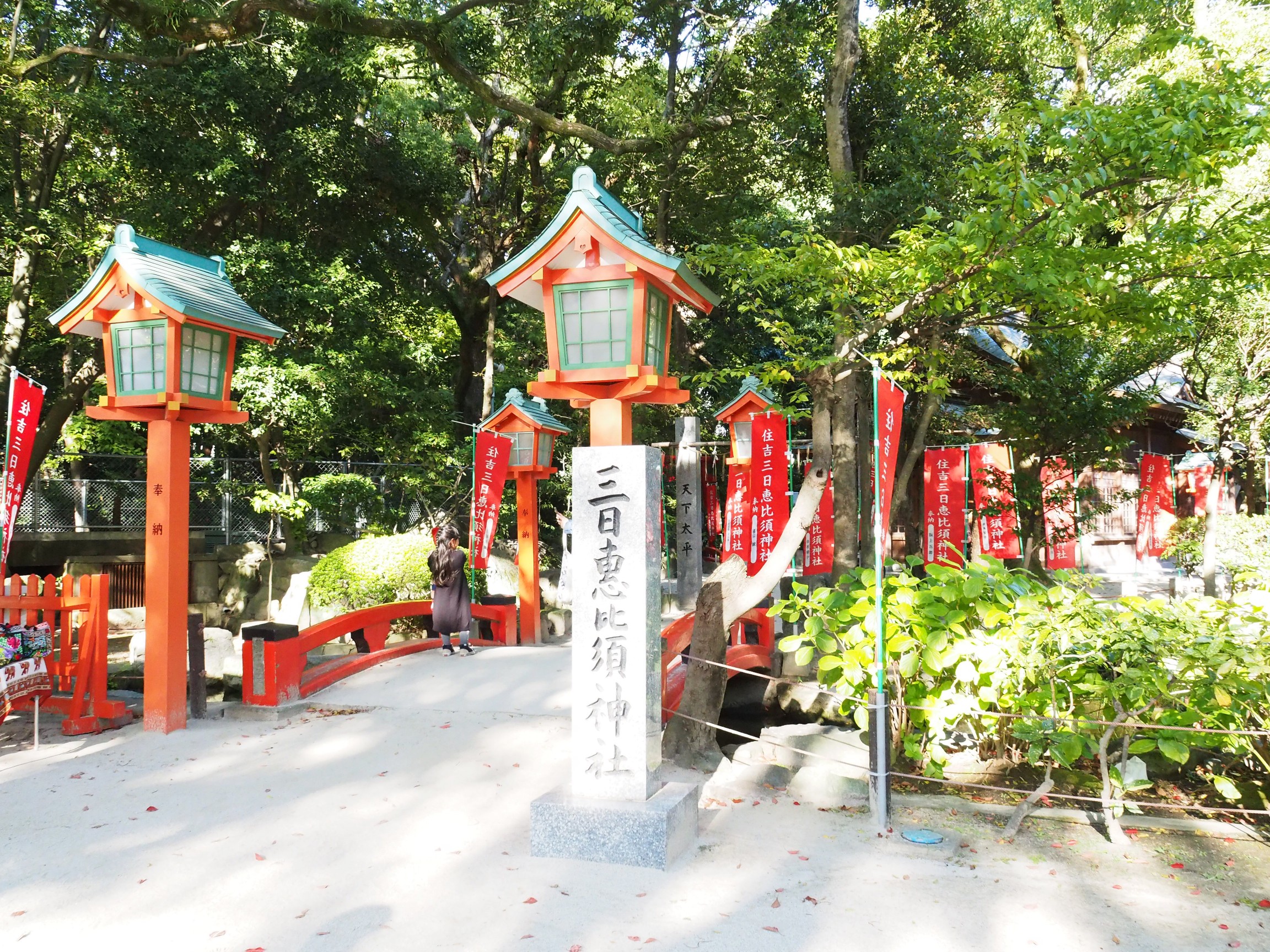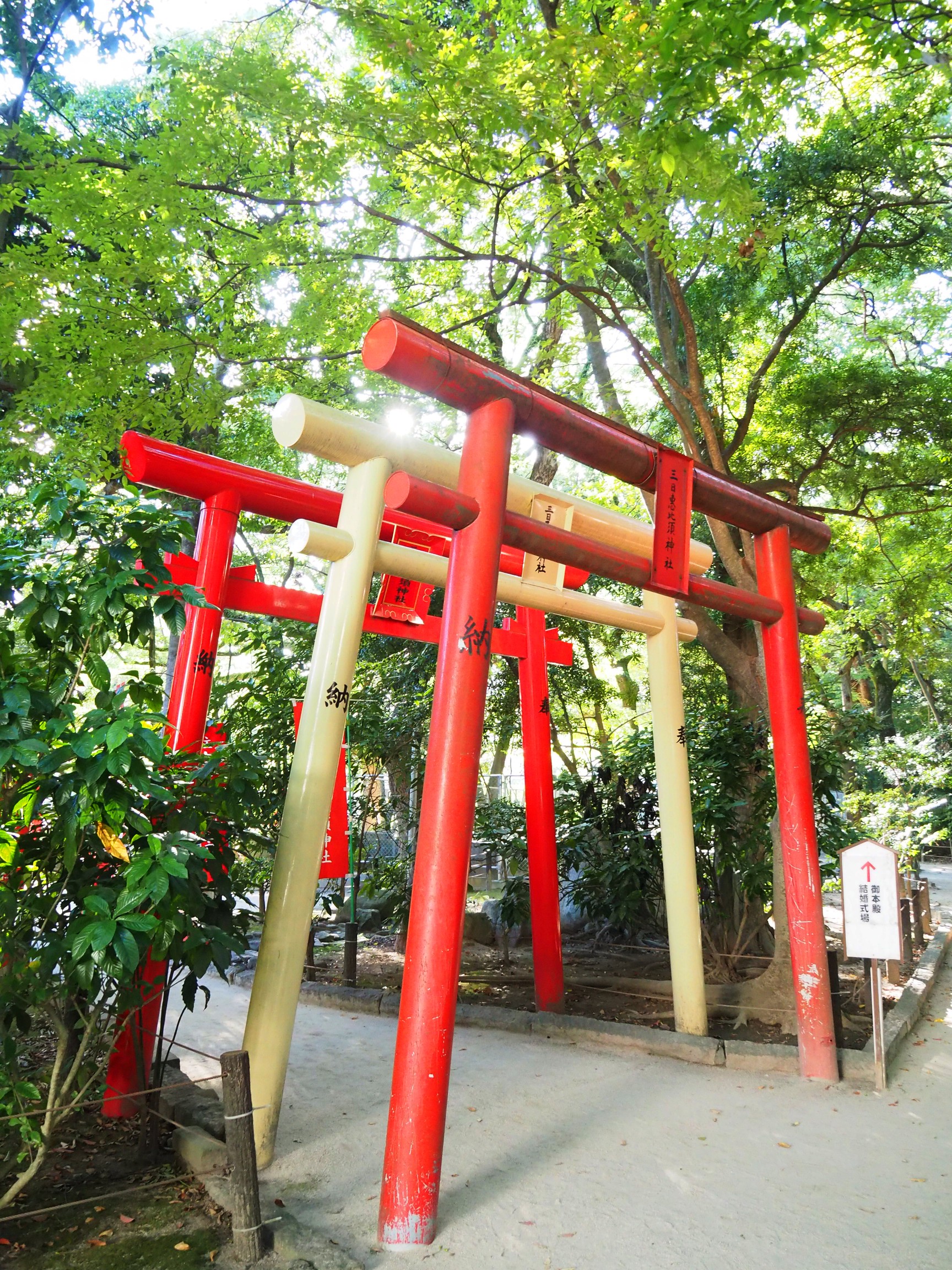 境內的另一處有著三日惠比須神社,主要是祈求幸運、招福,和航海安全。小巧的三個鳥居有種巧而美的感覺。