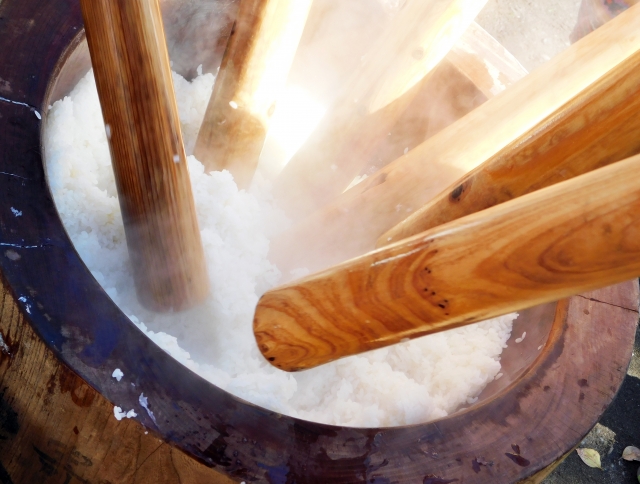 了解了數字16後,那為什麼是糰子呢?原來是跟糰子的製作方法有關。以前的糰子是把蒸過的糯米放到臼中以杵敲打,敲打時會發出「咚、咚、咚」的聲音,讓神明知道你在哪裡。