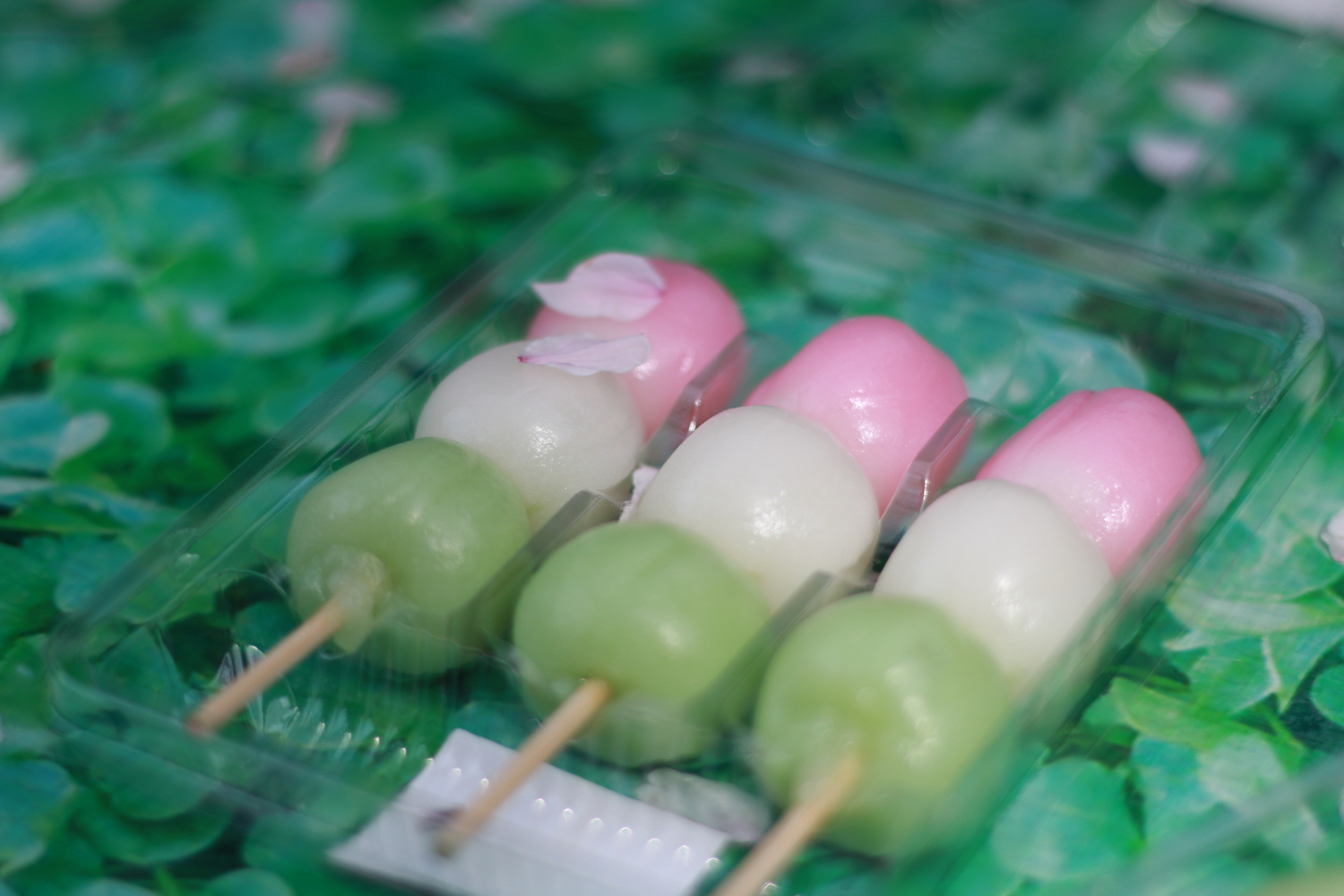 一串中有粉紅色、綠色及白色,有些會使用食物天然顏色,但大部份都是使用食用色素,所以吃起來並不會有特別的味道。因為常常會在賞櫻時吃,所以又名「花見団子」(hanami dango)。